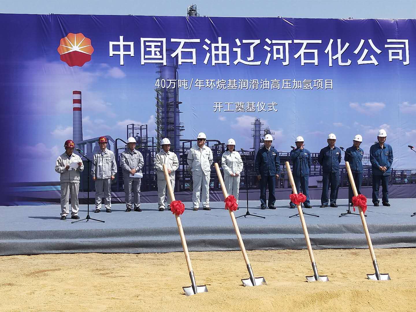 2018年5月8日上午9時(shí)58分,風(fēng)和日麗,晴空萬(wàn)里。中國(guó)石油遼河石化公司40萬(wàn)噸/年環(huán)烷基潤(rùn)滑油高壓加氫項(xiàng)目開工奠基儀式在遼河石化廠區(qū)項(xiàng)目現(xiàn)場(chǎng)隆重舉行。我公司總經(jīng)理田立奎、項(xiàng)目總監(jiān)理工程師黃思敏以及項(xiàng)目監(jiān)理部全體監(jiān)理人員參加了會(huì)議。