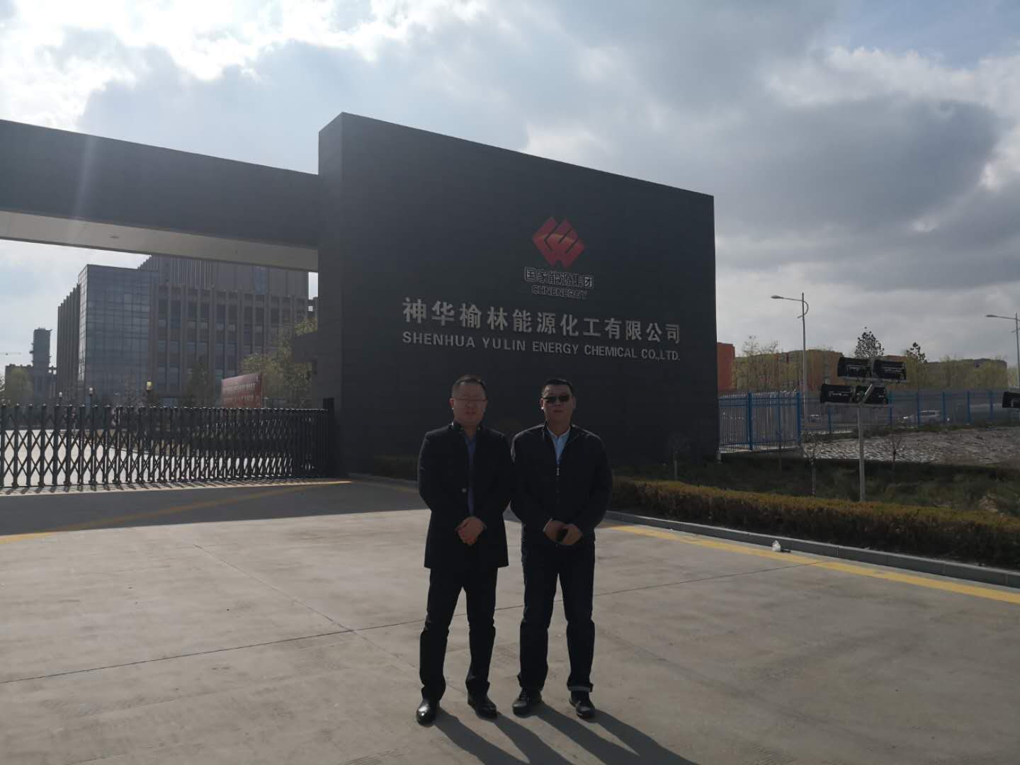 公司董事長(zhǎng)兼黨委書記趙劍平(左一)李雙龍(右一)項(xiàng)目總監(jiān),視察神華榆林項(xiàng)目部