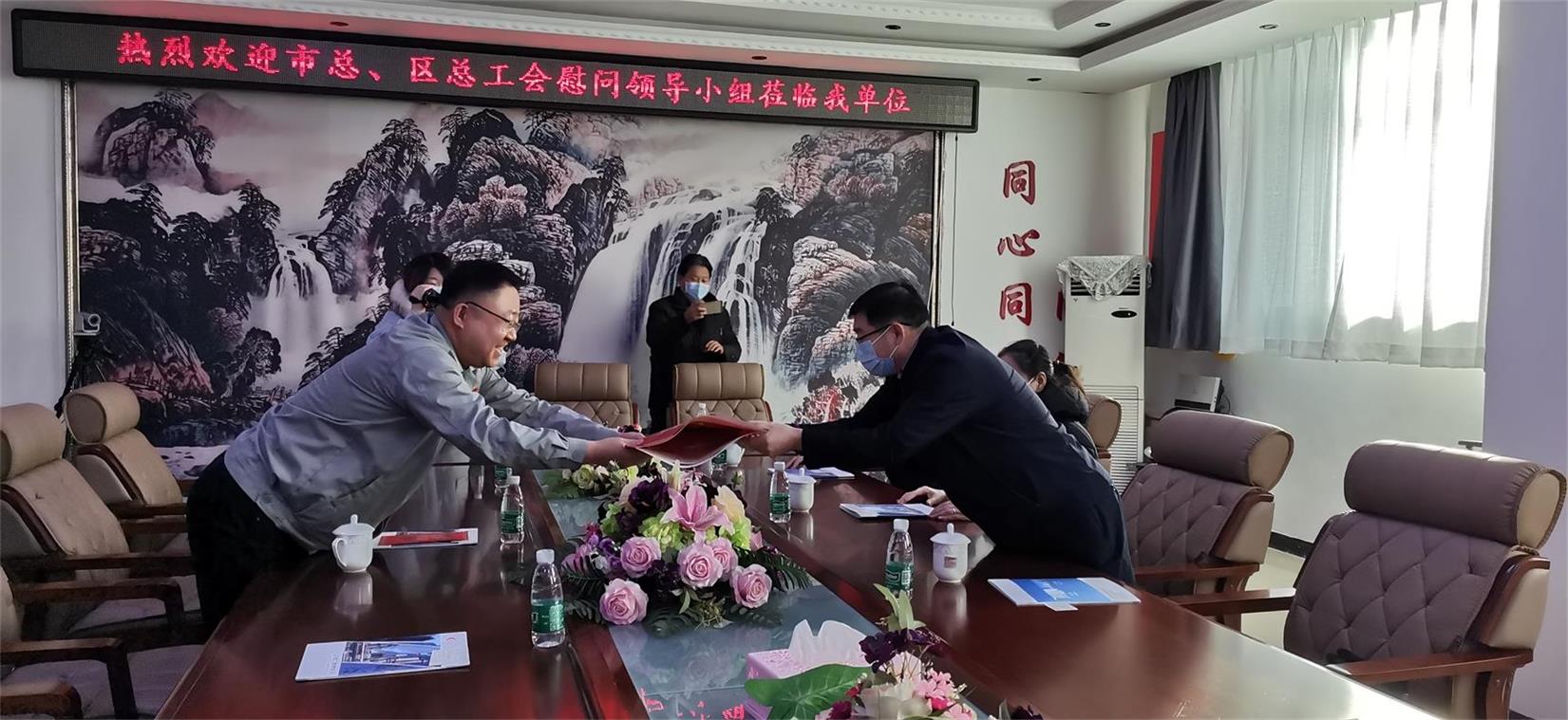 張主席聽完匯報(bào)后,首先肯定了我企業(yè)工會(huì)的日常工作,以及疫情爆發(fā)之初,我企業(yè)向社會(huì)作出的突出貢獻(xiàn),并向我企業(yè)工會(huì)撥入送溫暖資金5萬(wàn)元。最后,張主席還意味深長(zhǎng)地說(shuō):感謝我企業(yè)在本行業(yè)的堅(jiān)守,在本市的堅(jiān)守。馬書記還在春節(jié)即將來(lái)臨之際,為企業(yè)贈(zèng)送了春節(jié)對(duì)聯(lián)。